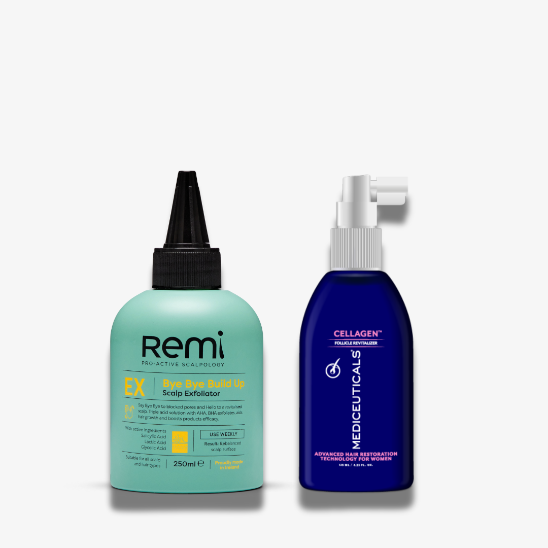 Regular price €60,00Transform your scalp and hair care routine with this dynamic Bye Bye Build Up & Cellagen Bundle. Specially designed to address thinning hair, scalp buildup, and hair growth concerns, this 2-step bundle works together to improve scalp health, reduce hair loss, and stimulate new hair growth. With the power of exfoliation and follicle stimulation, this bundle provides the perfect foundation for healthier, thicker hair.