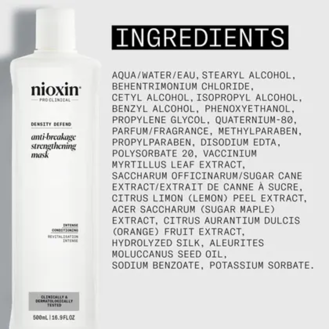 Nioxin’s Anti-breakage Strengthening Mask promotes the thickness and strength of your hair by providing an effective defense against breakage.