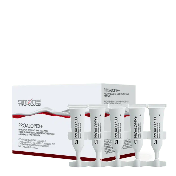 Discover PROALOPEX+ by SIMONE TRICHOLOGY, the ultimate solution for hair loss and hair regeneration. Our advanced formula is designed to address androgenetic alopecia, restoring density and vitality to your hair. We’ve demonstrated a 25% decrease in DHT levels, a hormone associated with hair loss, and a 30% increase in terminal hair diameter in clinical studies. Whether you’re a man or a woman, whether you’re seeking a solution for hair loss or post-transplant care, PROALOPEX+ is your answer. Trust the trichology experts at SIMONE for your hair care. Reclaim your confidence and healthy hair today.