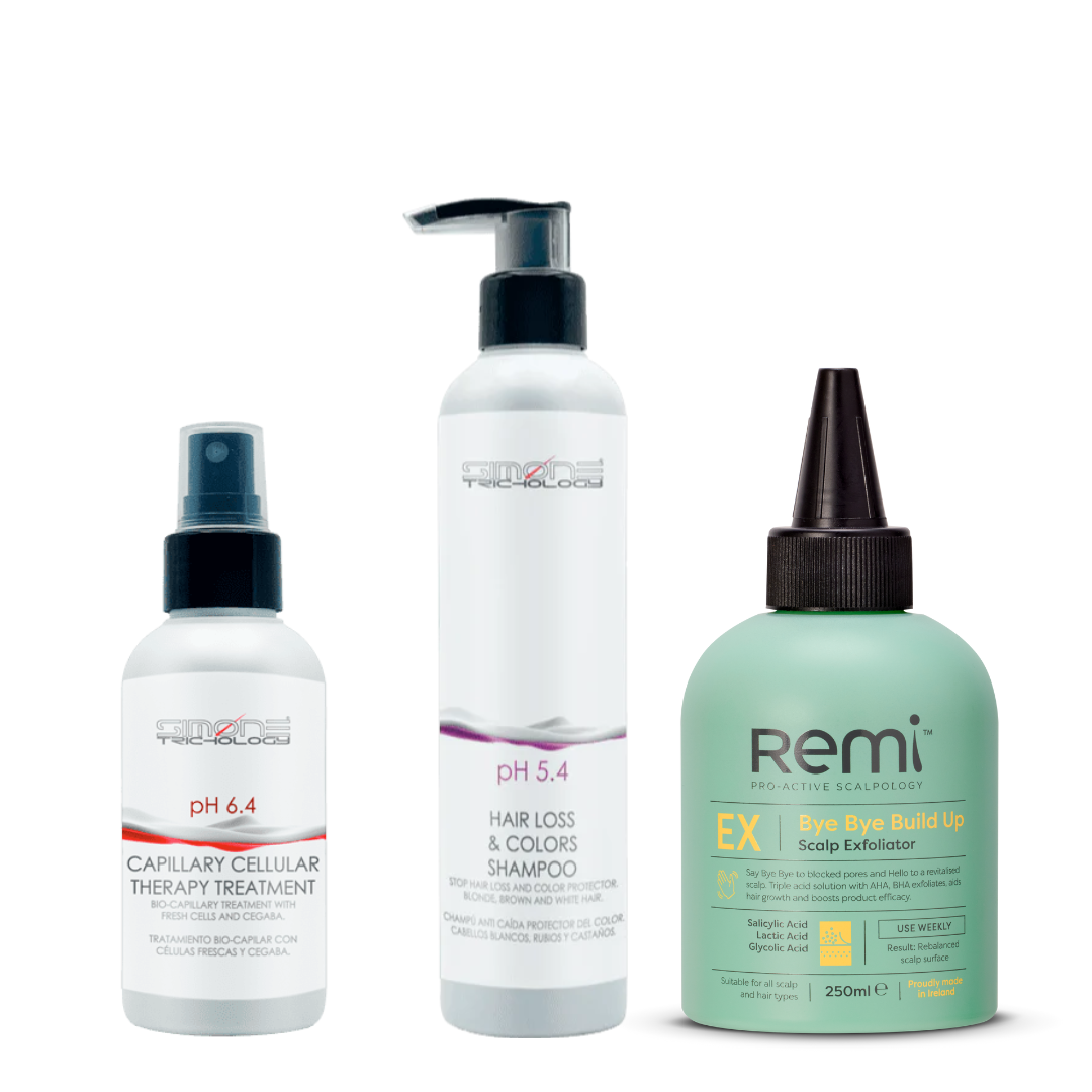 The TikTok Energizing Bundle combines Simone Trichology Prevention Hair Loss Shampoo, Capillary Treatment, and Remi Bye Bye Build Up to support healthy scalp and hair vitality. This expert-selected set helps cleanse, strengthen, and protect hair by targeting buildup while promoting scalp health and reducing hair loss risk. Ideal for those seeking a comprehensive, science-backed routine to maintain energised and resilient hair.