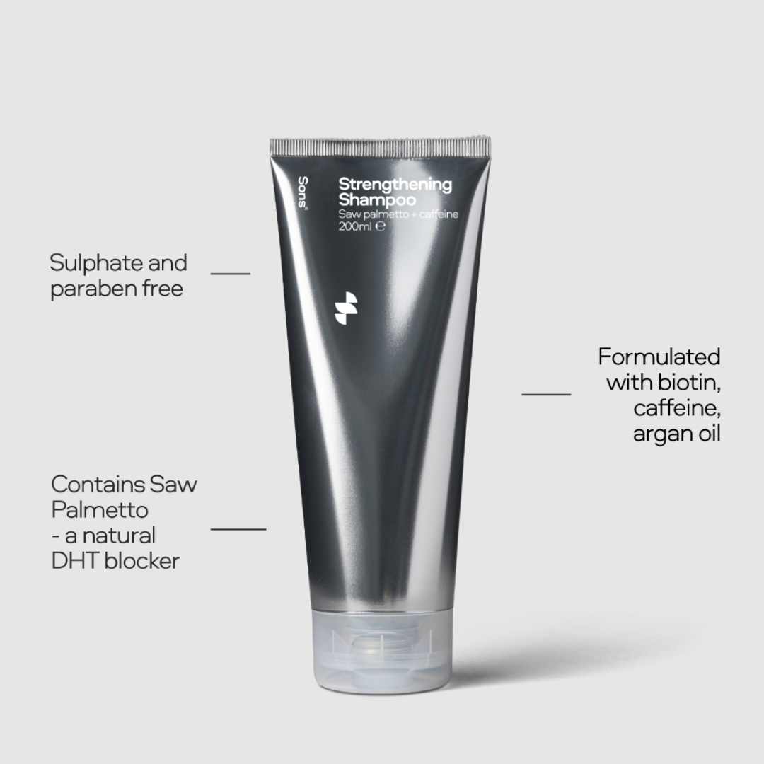 Sons Shampoo harnesses saw palmetto to help minimize DHT buildup on the scalp, promoting thicker, healthier-looking hair. Enriched with a curated blend of natural oils, it delivers a refined fragrance while cleansing. Apply daily to wet hair, massage for 90 seconds, and rinse thoroughly for optimal results.